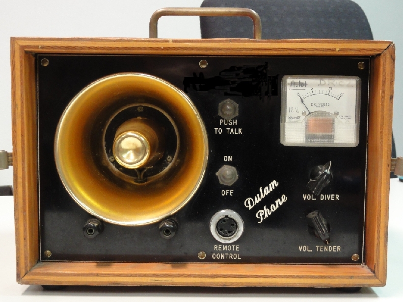Allerdings habe ich vor einigen Jahren in Dänemarkt in einem Antikhandel diesen Teil (siehe angefügte Fotos) eines DULAM Phone Unterwassertelefones erstanden.