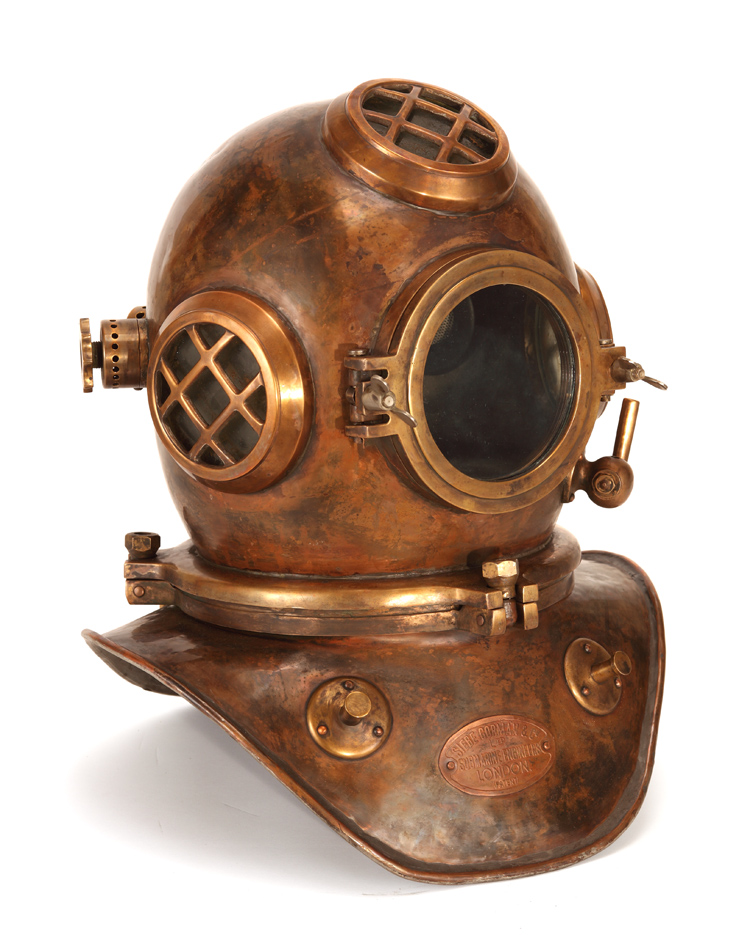 Dabei haben die Fälscher einen Heinke-Helm kopiert (Heinke wurde ungefähr zu der Zeit, als der Helm entstanden ist, von Siebe Gorman übernommen), der Anfang 2009 gestohlen wurde, inzwischen aber wieder aufgetaucht ist.